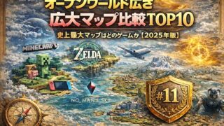 オープンワールドゲームの広さランキングTOP10を徹底解説。Minecraft、No Man’s Sky、Skyrimなど、史上最大級マップを比較検証。Top 10 largest open-world games ever made. A deep dive into massive maps like Minecraft, No Man’s Sky, and beyond in 2025.