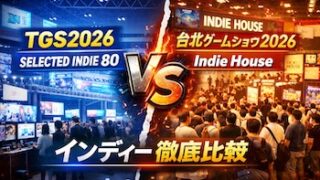 TGS2026のSELECTED INDIE 80と台北ゲームショウ2026のIndie Houseを比較。規模・賞・来場者反応からインディーの現在地を整理します。Comparing TGS2026 SELECTED INDIE 80 and TGSH2026 Indie House highlights.